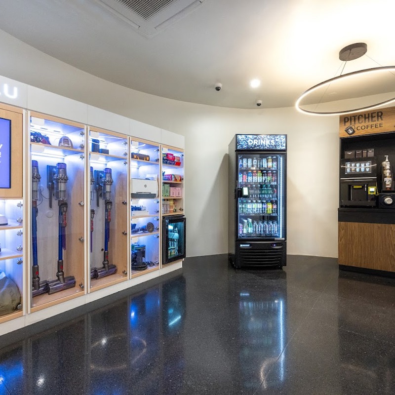 The all-new Parker Pantry, located in the Bryant (104-20) Lobby, offers convenient access to fresh coffee, food, TULU, and office services. The pantry is a 24/7 shop for food, drinks, snacks, and fresh coffee, from espresso drinks to iced coffees! Our pantry is also a TULU hub, where residents can shop for toiletries or rent home appliances like vacuums, projectors, power tools, air mattresses, and more. Need to print something? We've got you covered.